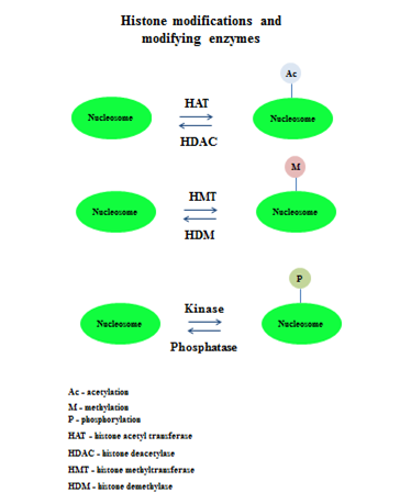 Figure 1 Most common histone reversible modifications and modifying enzymes.
