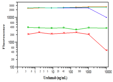 Figure 3 The fluorescence signal output profiles in the Luminex platform as a function of urelumab concentration at