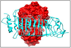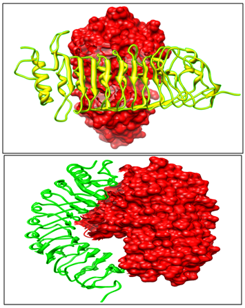 The experimental and literature studies,25 point towards the fact that PvPGIP2 blocks the activity of fungal enzyme FmPG. Out of the top ten models returned by GRAMM-X, selected model is such that the active site of FmPG is blocked by PvPGIP2 thus depicting enzyme inhibition (Figure 3).