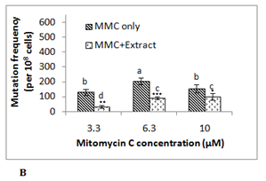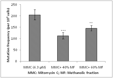 Figure 2 Analysis of antimutagenic potential of methanolic fraction of date palm fruit against mitomycin c-induced mutagenicity.