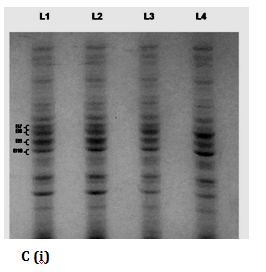 Figure 3C Protein expression profile: (i) SDS-PAGE (Lane L1: Control, Lane L2: P8 treated, Lane L3: MMC 6.3 μM treated, Lane L4: MMC+P8 treated and (ii) Relative band intensity.