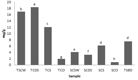 Except otherwise stated, all analyes were performed in triplicate and the data generated were analyzed using one way analysis of variance(ANOVA) using SPSS version 20.0. The means were separated using the Duncan New Multiple Range Test and significance was accepted at p≤0.05.
