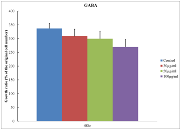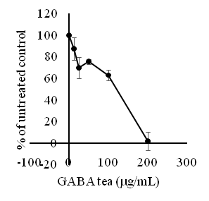 HT-29 cells were plated at 10,000 cells per well in 96-well plate. After 18 h of culture, cells were treated with GABA tea extract and stained with MTT after 48 hour treatment. Data were obtained from the averages of three independent experiments.