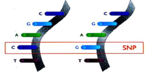 All humans are 99.9% identical at gene sequence level. But common polymorphisms can determine the dietary requirement of each individual. Generally, 0.1% variations in sequence produce differences in phenotype.8 This variations manipulate individuals respond differently even with food consumption. Most common type of polymorphisms is single nucleotide polymorphism which is called as SNP.38,39 A SNP is sequence variation occurred in a DNA by replacing a single nucleotide (adenine (A) or thymine (T) or cytosine (C) or guanine (G)) in the genome among members of a species or paired chromosomes in an individual (Figure 4). SNPs change at single base makes 90% of all variations and about 3 million SNPs are identified in humans. These differ SNPs in an individual can lead unique response to same diet among group of people.40,41 Other than above variations, structural variations (deletions, inversions, insertions, duplications, and copy-number variations) in chromosome and clines can be observed rarely in organisms that can influences nutrient metabolism pathways.39,42,43