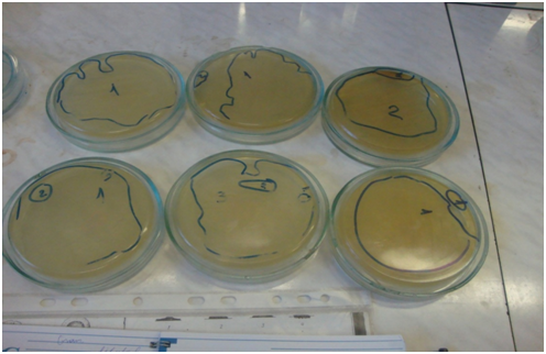 - Make bacterial inoculation in Petri dishes with microbiological loops flambed in flame.