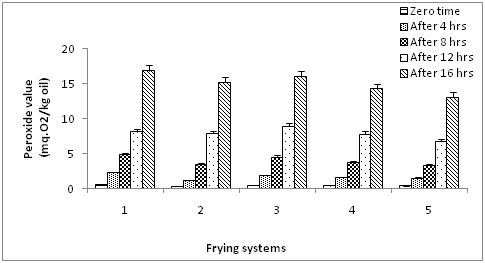 Figure 5 Peroxide value of blended olive oil during frying. Values are expressed as mean±SE, P ≥ 0.05.
