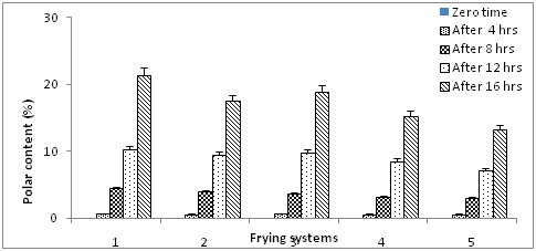 Figure 6 Polar contents of blended olive oil during frying. Values are expressed as mean±SE, P ≥ 0.05.