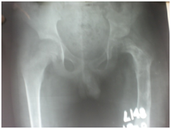 On general physical examination Patient was below average weight and height, well oriented time space and person.Haemodynamically stable. No abnormality was detected on systemic examination. On local examination there was a discharging sinus lateral aspect of Left upper thigh, Left hip was flexed, adducted and internally rotated. Trochanter was migrated proximally; Left lower limb was 7cm short. Distal neurovascular status was intact.