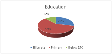 More than half of the respondents (59%) completed primary education followed by illiterate (29%) and below SSC (12%) (Figure 1).