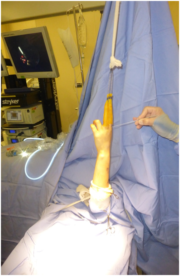 Citation: Mangat KS, Khadim MF, Lindau T. A safe, simple and cost-effective method of set up for wrist arthroscopy. MOJ Orthop Rheumatol. 2019;11(2):67-68. DOI: 10.15406/mojor.2019.11.00473