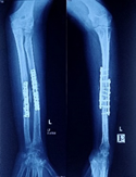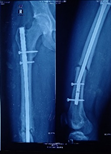 Re-fracture shaft of femur with bending plate and quiescent type infection. H/0-fall (Figure 5-10)