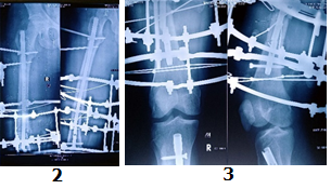 After 3 to 7 months follow up, we found 4 patients were excellent results and 3 good outcomes according to ASAMI score. As per Paley`s classification, 3 case found, 1-2.5 cm shortening and 10-150 angulation. We were successfully managed all patients of implant failure with bone re-fractures, non-union and infection by applying AM tools by Ilizarov frame.
