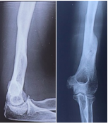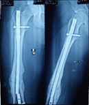 Broken ILIMN of femur (Ipsilateral fracture shaft of femur with tibia and fibula, H/O-poly-trauma) (Figure 1-4). Infection and non-union are the morbid complications of fracture management. Infections are more common in open fracture also caused by superficial surgical site infection. The incidence of infection in closed long bones fracture 1-2% and it is higher in open fracture, 5% Gustilo type-Ⅰ, 10% Gustilo type-Ⅱ and 15% Gustilo type-Ⅲ8 and surgical site infection (SSI) is 3.6 to 4.8%.9 The fracture complexity and soft tissue damage are the critical factors, influence the risk of infection.