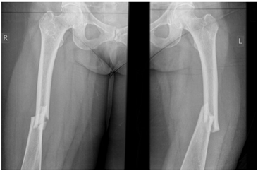Citation: Morrissey L, Memon AR, Glynn A (2017) Bilateral Atypical Femoral Shaft Fractures and Bisphosphonate Therapy; A case report. MOJ Orthop Rheumatol 8(3): 00314. DOI: 10.15406/mojor.2017.08.00314