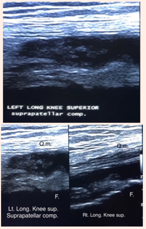 The Right Knee sonography reveals minimum amount of fluid with homogeneous hypo echoic thickened synovium.