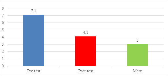 Table 1 Shows mean value, mean difference, standard deviation and paired ‘t’ value between pre-test and post-test scores of pain