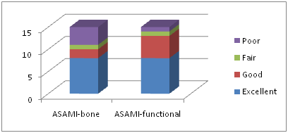 Using the classification of the Association for the Study and Application of the Method of Ilizarov (ASAMI) based on clinical (functional) and radiological (bony) findings.8