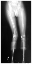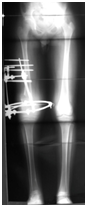 In the case of skeletal reconstruction, bone defects are ideally repaired with viable bone reconstruction. Distraction osteogenesis with a ring fixator that was developed by Ilizarov and callotasis with a unilateral fixator by De Bastiani, have been universally used for the management of many orthopaedic problems.3-6 The main advantage of distraction osteogenesis is that it can achieve regenerated viable bone with the same strength and width as that of the native bone. Peripheral nerves, vessels, muscles, tendons, ligaments, and skin are also gradually lengthened with a ratio to the lengthened bone.7 The Ilizarov method is a safe means of limb reconstruction in the setting of primary or secondary reconstruction of bone tumours. Limb lengthening, bone transport, repair of nonunion, and correction of deformity, in the setting of bone tumours management, could be safely and effectively managed by the circular fixator.8