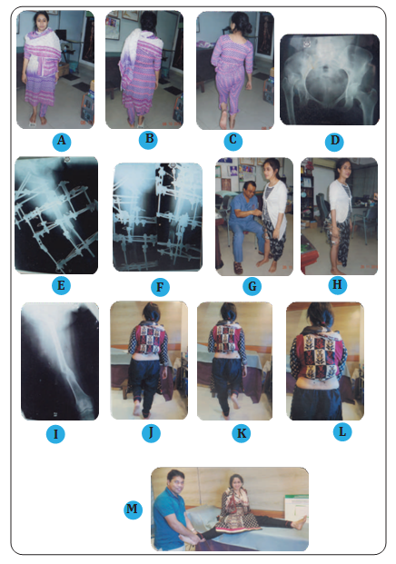 Evaluation of gait, leg length and range of motion is very important for surgical intervention. A Trendelenburg sign confirms the weakness of the hip. Range of motion of the hip (flexion, abduction, adduction, external rotation and internal rotation in both supine and prone positions) should be carefully recorded. Flail hip is the best candidate for Ilizarov hip reconstruction.3,6,7 The patient’s ability to adduct the hip combined with weakness of hip abduction strength is a verykey contributing factor to the Trendelenburg gait. With Ilizarov hip reconstruction greater ability of abduction of hip ensues. With Ilizarov hip reconstruction extension at the proximal osteotomy helps the patient lock the hip into extension during gait. LLD and limb deformity should be noted by looking the legs, iliac crest and back exposed.3 Blocks should be placed under the affected leg until the pelvis becomes level and the back looks straight. It will give a good estimate of total LLD. Trendelenburg gait is one of the hallmarks of this disease. Ilizarov hip reconstruction is very effective in eliminating Trendelenburg gait and sign in these patients. No other treatment option except arthrodesis has been able to address this aspect of the problem. Unstable mobile hip is absolutely indicated for Ilizarov hip reconstruction and simultaneously we can correct limb length discrepancy and effective in eliminating Trendelenburg gait.8,9