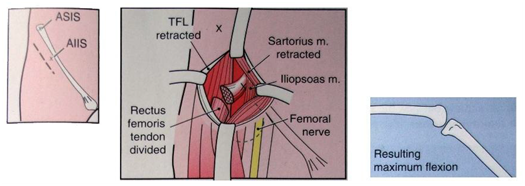Step-3 (Rectus femoris release): With a small bikini line inguinal incision of approximately 3 to 4 cm is made, the rectus is identified and is transected.