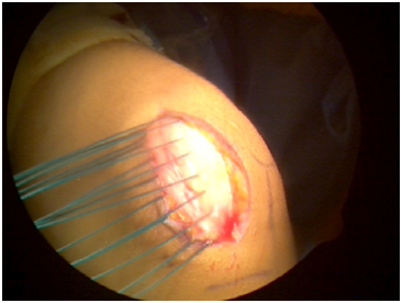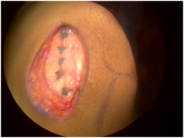 Tom A & Fulkerson JP23 studied 13 consecutive cases in which an MPFL remnant was stretched, elongated and healed after a patellar dislocation. The MPFL was explored using a mini-open incision, noted intraoperatively to be attenuated and primarily repaired to restore the patellar stability. This study is consistent with our preoperative MRI and associated intraoperative findings, leading us to recommend repair of the midsubstance tear of the MPFL associated with intra-articular pathology. A primary repair has been shown to restore patellar stability in patients who have had dislocations and offers a viable alternative to a full MPFL reconstruction, without its attendant risks of autograft donor site morbidity or allograft infection or disease transmission.