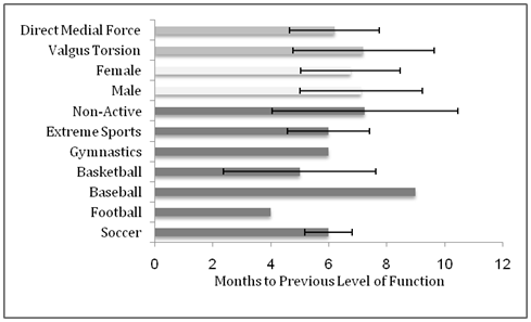 Figure 9 Summary of Clinical Data and Return to Previous Level of Function. Data did not vary significantly based on mechanism of injury, gender, or activity to be resumed.
