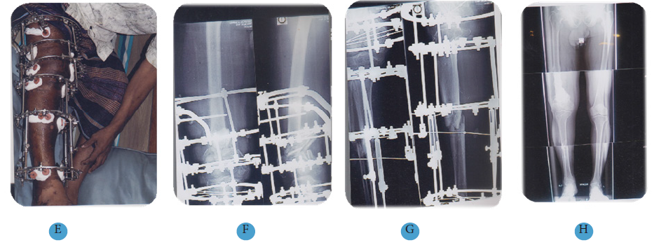 (D) Radiographic view of tibia, treated by Ilizarov technique.