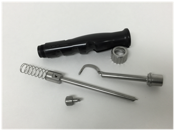 Figure 1 A reusable transosseous tunneler design breaks down for sterilization and allows repeatable transosseous tunneling within the case.