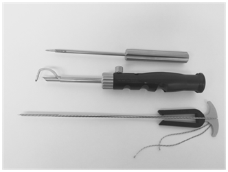The Transos tunneler (tensor surgical, chattanooga, TN) is a reusable, value-based device which enables accurate and reliable tunneling through the humerus with simple retrieval mechanisms and simultaneous suture delivery and retrieval, reducing the number of steps and complexity in creating tunnels arthroscopically. (Figure 1) Similarly, it passes suture through compacted rather than drilled bone tunnels for added mechanical strength. This device can be used as a stand-alone device or in combination with anchors for a hybrid approach to soft tissue repair. Reusable tunnel creation allows extra fixation points and circumferential compression at no additional cost, thereby maximizing outcome and minimizing cost.