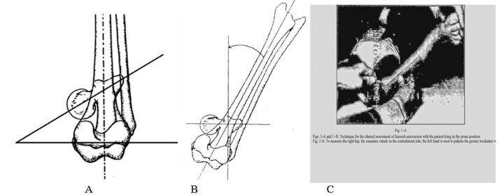 All patients underwent clinical evaluation of femoral torsion by Ruwe3 (Figure 1A-1C), besides we have used our original method (Figure 2A & 2B).5