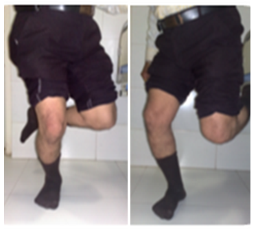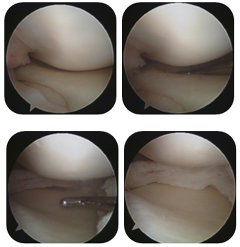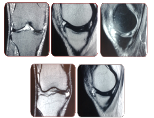 A 42 year old male consulted at arthroscopy and sports medicine institute because of right anteromedial knee pain on complete knee straightening and occasional limp and swelling on exertion. The pain was of 8 months duration, without any previous history of trauma, fall, either direct or indirect and was insidious in origin, and gradually progressive. There was occasional catching sensation especially on near complete knee extension. The pivoting activities was accompanied by pain and limp later and gradually progressed, affecting activities of daily living like prolonged standing ,sitting cross legged and squatting. The patient did notice fullness in the anteromedial region on exertion. There was no rest pain and no constitutional symptoms. Clinically, the medial joint line was tender and, Steinman II and Thessaly test were positive4 (Figure 2). He had full range of motion with pain only on terminal extension localizing medially. The lachman, pivot shift was negative. Radiographs were seemingly normal with a flat medial plateau with MRI showing a bow-tie sign persisting in all sagittal images of medial meniscus with a grade 2 signal intensity (Figure 3).