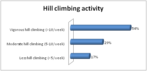 Most prevalent age to develop osteoarthritis was above 50 year. Most frequent affected joint was knee. Hill climbing may be aggravated factor.