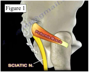 Figure 1 Depicts the most common anatomic relationship of the sciatic nerve exiting anterior to the piriformis muscle.5