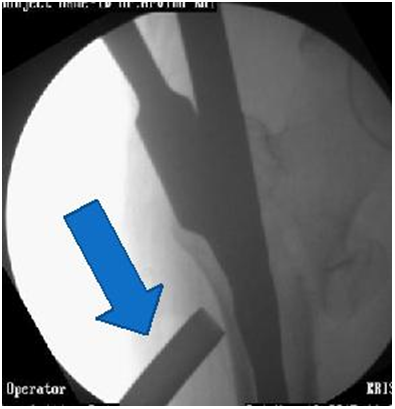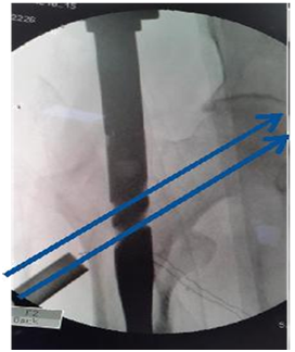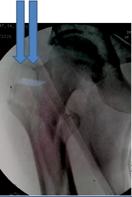 Figure 16 Guide wire going medially sometimes can exits out through fracture and damage neurovascular structures.