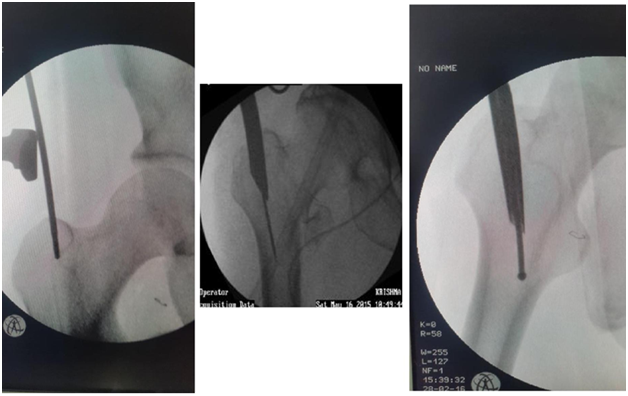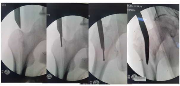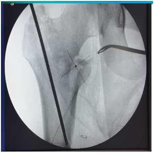 - Placing the Lag screw (Compression Screw) in the centre of hip (or sight inferior).