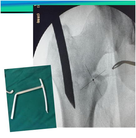 Use of curved femur finder device, retractor push, cannulated curved awl to pass the guide wire in correct direction (Figures 14-17).