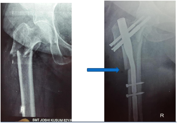 - In case of failure to get closed reduction or in case of failure to obtain good valgus angle of head and neck proceed to open reduction or switch to DHS. Only 2 angles are available in PFN 130 and 135 degrees.