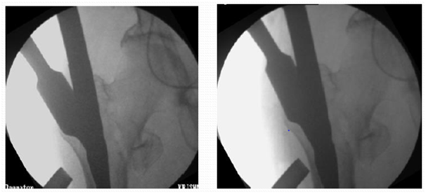 - C position on fracture table with eccentric perineal post (Figure 6).