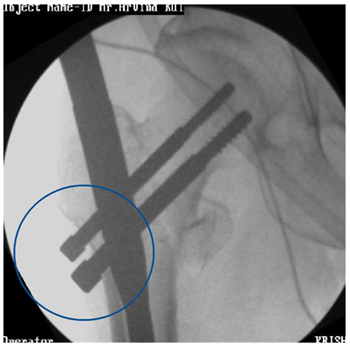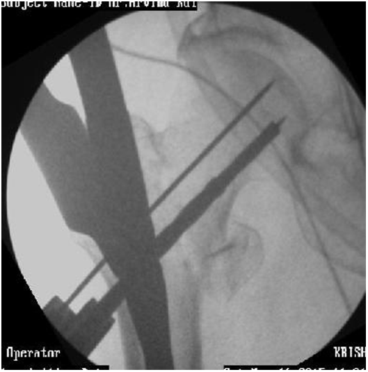 Hip pin to be shorter than compression screw. Deep positioning to maintain tip apex distance. Head screws to be tightened alternately for compression. But may sink inside bone (Figure 31,32).