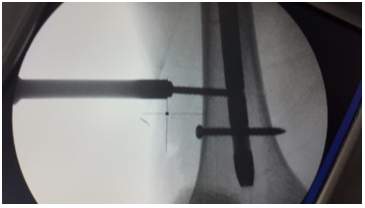 - If drill hits on nail switch to smaller drill bit or thick K wire. May use smaller bolt or cortex screw.