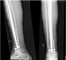 Closed distal third tibia fractures are common injuries in South Africa, where there is a high incidence of pedestrian and motor vehicle accidents. The surgical options of treating these fractures include intramedullary nail, open reduction and plate fixation and external fixation.1 There is controversy in the literature about the best option for the management of these fractures.1,2