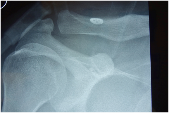 All patients had radiographs at the time of injury, intraoperative, 6 weeks, 12 weeks, 18 weeks and 24 weeks postoperative. All radiographs were evaluated for reduction of the AC joint and intact fixation.