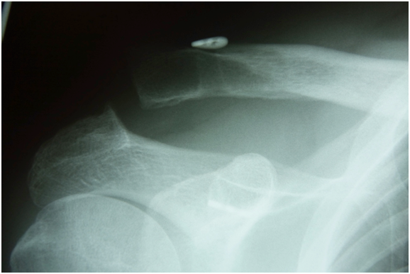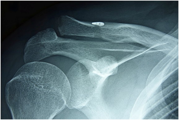 Treatment of acute acromioclavicular (AC) disruptions is controversial.1-2 Both operative and non-operative treatments can be acceptable. High grade AC injuries, with complete disruption of the coracoclavicular (CC) ligaments, have been those considered for surgical intervention.3-4 A variety of surgical procedures have been proposed over the years.5-11 Complications after AC surgery are relatively common with the most common being loss of reduction. Other problems include hardware failure,12-14 fracture of the clavicle or coracoid,15 and heterotopic ossification.