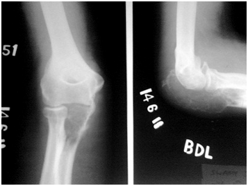 Citation: Thejaswi SG. Reconstruction of elbow by free fibular graft in a case of osteoclastoma of proximal ulna: a rare case report. MOJ Orthop Rheumatol. 2015;3(1):279-282. DOI: 10.15406/mojor.2015.03.00087