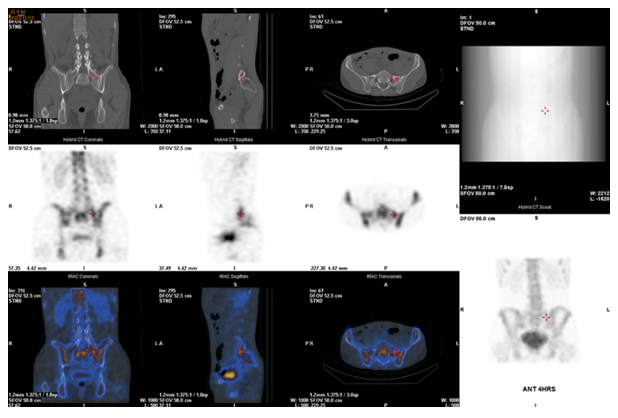 Single-photon emission computed tomography (SPECT) is a nuclear medicine imaging modality employed for the functional assessment of tissues and organs, distinguishing itself from purely anatomical imaging techniques.4 Furthermore, integrating images of SPECT and computed tomography (CT) provides explicit sites due to CT’s morphological characterization and more accurate localization from SPECT at the uptake site.5 To our amazement, SPECT can also play a crucial role not only in radiation treatment planning but also in the evaluation of therapy response.6 SPECT-CT was also employed to precisely identify the specific location and target the lesion for accurate therapeutic intervention in our case. We present a case with remarkably intense uptake in the pseudo-joint observed through scintigraphic imaging, demonstrating complete remission of pain following interventional steroid injections.