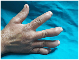Citation: Zoubeidi H, Daoud F, Rachdi I, et al. Severe hypothyroidism presenting as arthropathy of the fingers: a new case report. MOJ Orthop Rheumatol. 2019;11(6):208-210. DOI: 10.15406/mojor.2019.11.00503
