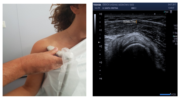 Shoulder Pain is one of the most common musculoskeletal disorders observed in the Rehabilitation setting. A standardized US protocol may evaluate in a reproducible manner all of the anatomical structures of the shoulder, taking into account anatomical hallmarks, patient´s and probe´s position. US in the hands of a Rehabilitation specialist are an inexpensive, accurate and cost-effective tool capable to evaluate normal and pathological shoulder.