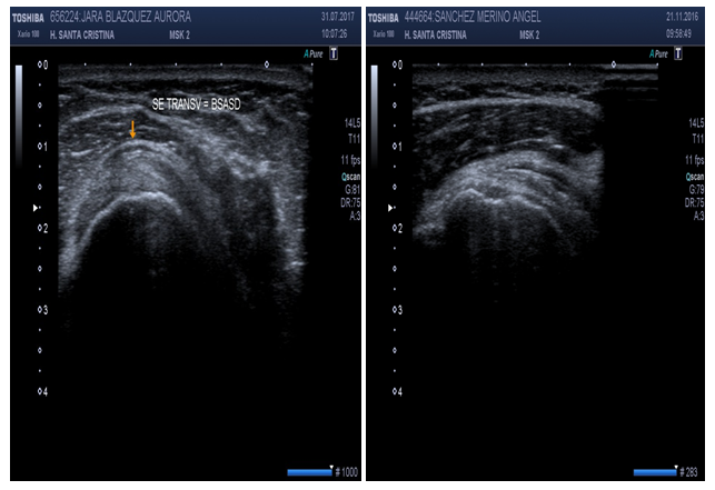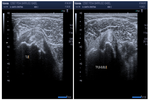 US is very useful for the evaluation of shoulder pathology. In fact, US was intended to accomplish that goal in the early 1970s.8 Shoulder pathology is the most frequent of musculoskeletal disorders. SP is very disabling and produces work absenteeism.5 Ecographic signs could confirm disorders due to multiple causes such as overuse (tendinopathy), acute trauma (partial or full rupture), repetitive trauma (tendinosis) degeneration, inflammation and crystal deposition (calcifying tendonitis).5