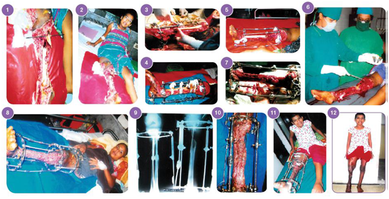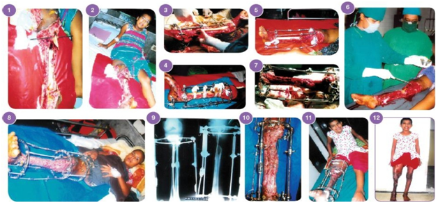 The management of segmental defects within the diaphysis of long bones is one of the most challenging problems that the surgeon confronts in his practice. The procedures traditionally used to bridge bone gaps include autogenous bone grafting,1 posterolateral bone grafting,2 transplantation of allograft bone & tibialization of fibula procedures.3,4 All the above traditional methods of management of bone defects sometimes require multiple surgical interventions. The treatment period is long & weight bearing may not be possible while the functional results are often less than satisfactory. Recent studies showed that the G.A. llizarov Technique is a more popular than vascularised bone grafts especially for big bone defects.5