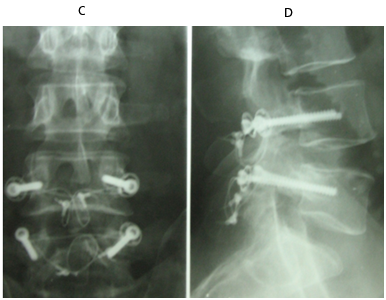 Various techniques have been reported such as Buck technique using translaminar interfragmentary screws, Scott wiring technique, hook screw constructs and pedicle screw rod constructs.9-13 The most important step in these operations is autogenous bone grafting of the defects after thorough debridement of the intervening tissues.